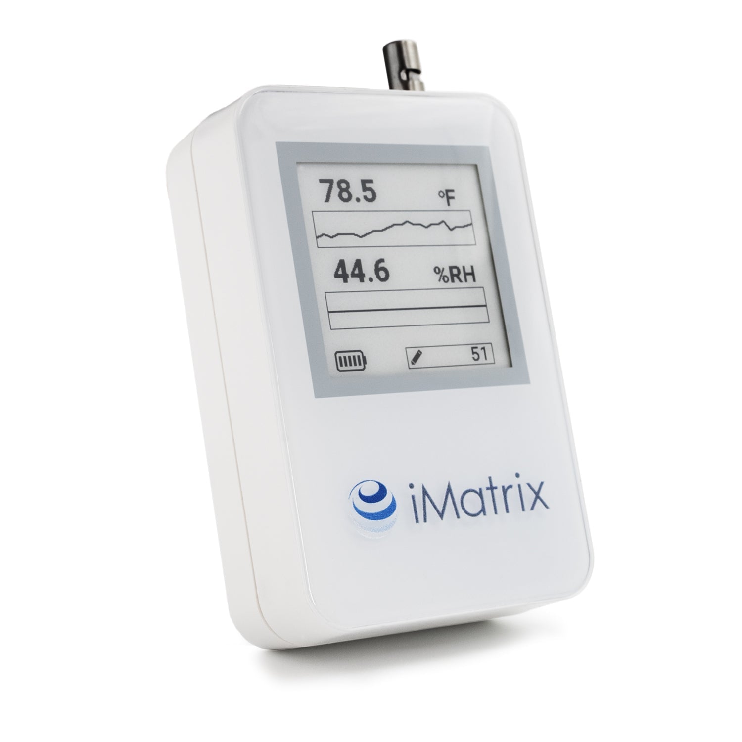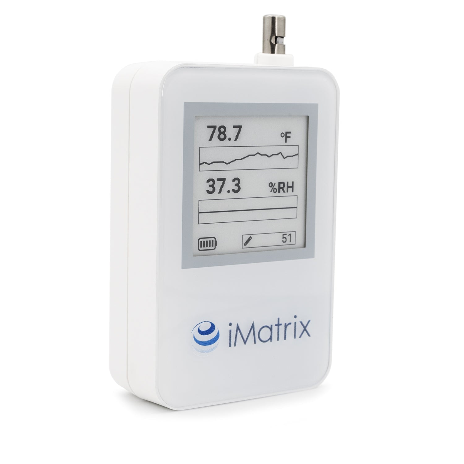 The iMatrix Neo BLE temperature and humidity sensor with a display provides the ultimate solution to monitoring climate-sensitive environments. This sensor can be used in stationary or portable applications and provides accurate, comprehensive logs sent directly to your smartphone or iMatrix Cloud.